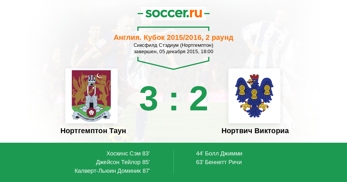 Протокол матча Нортгемптон Таун против Нортвич Викториа