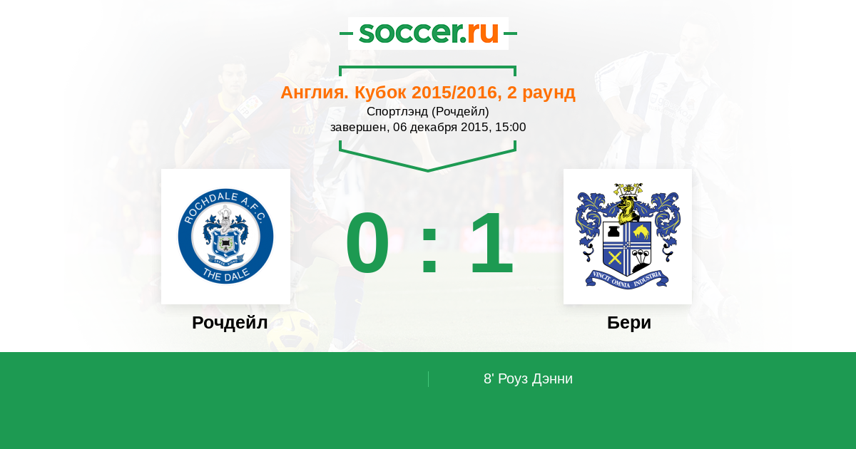 Протокол матча Рочдейл против Бери