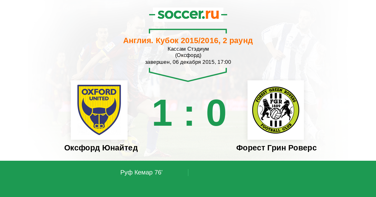 Протокол матча Оксфорд Юнайтед против Форест Грин Роверс