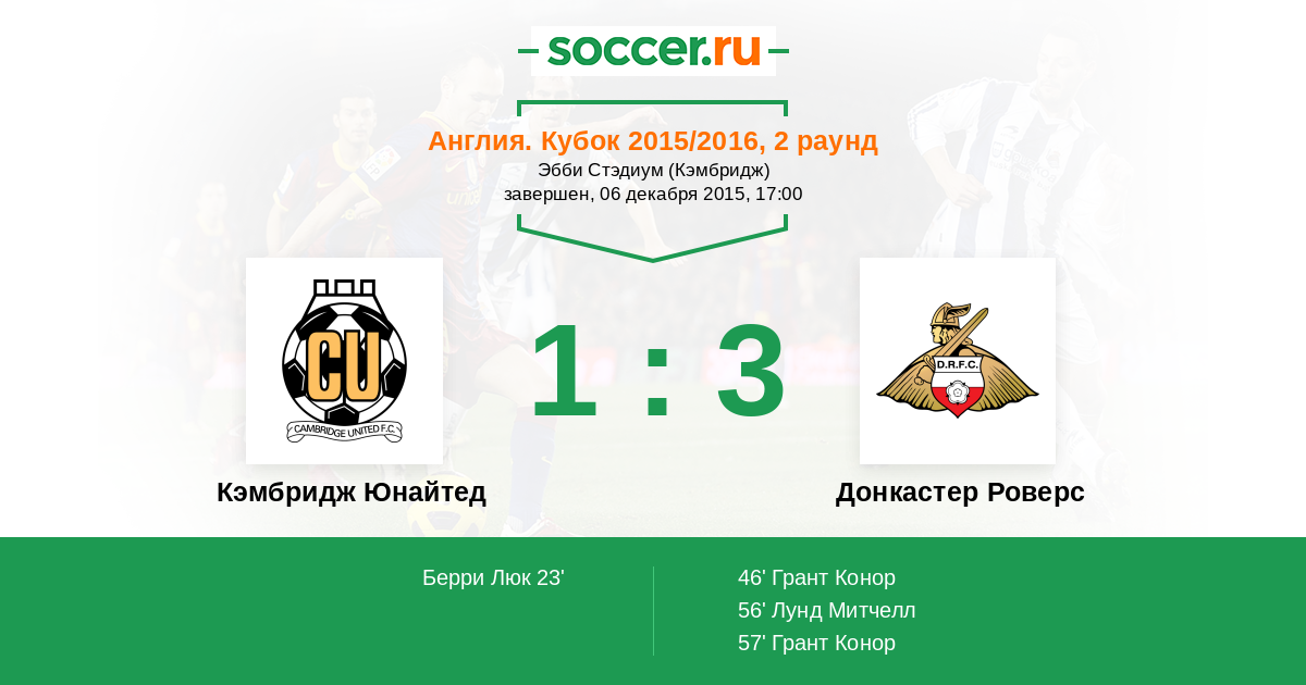 Протокол матча Кэмбридж Юнайтед против Донкастер Роверс