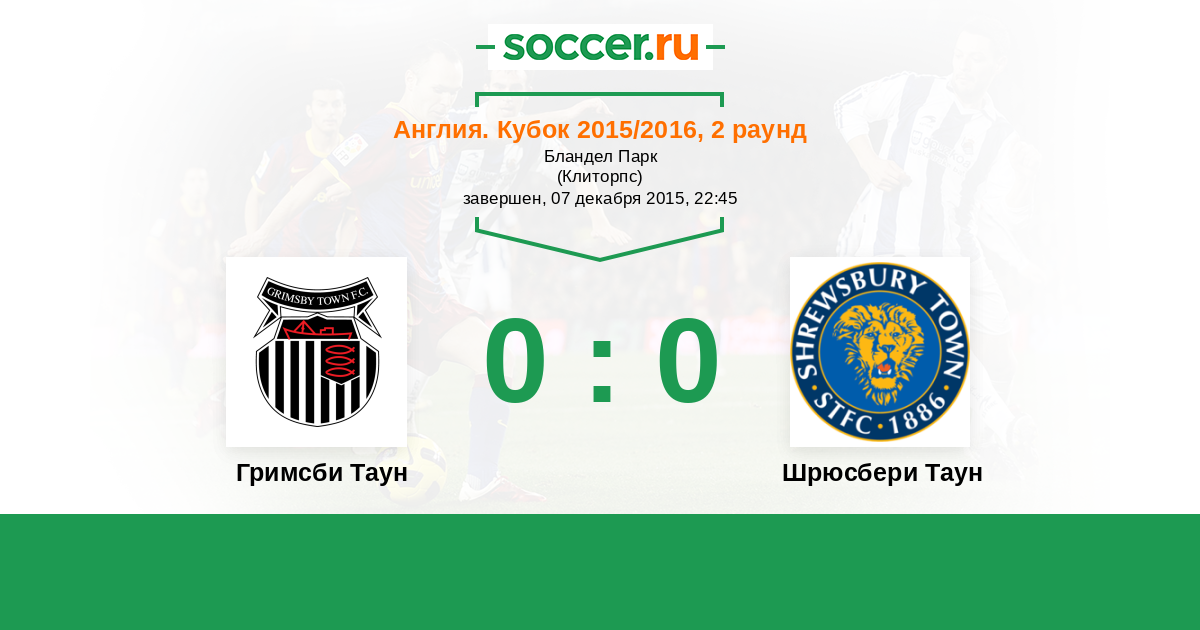 Протокол матча Гримсби Таун против Шрюсбери Таун