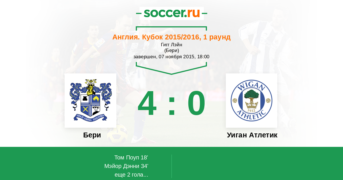 65' (4:0) Кларк Леон (Райли Джо (2))