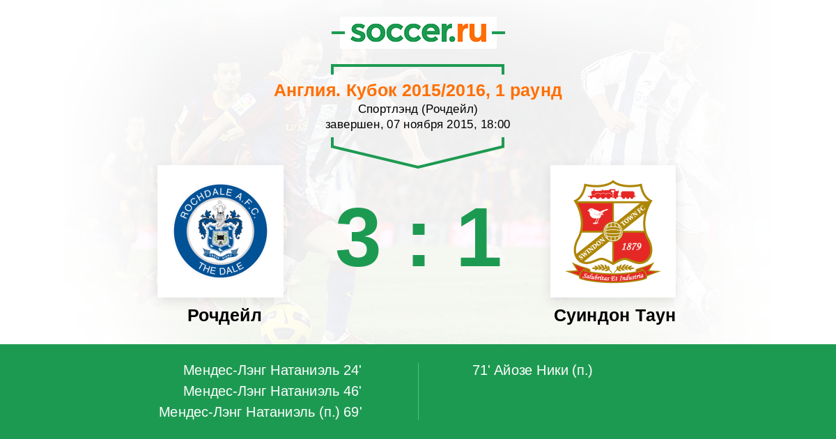 Протокол матча Рочдейл против Суиндон Таун