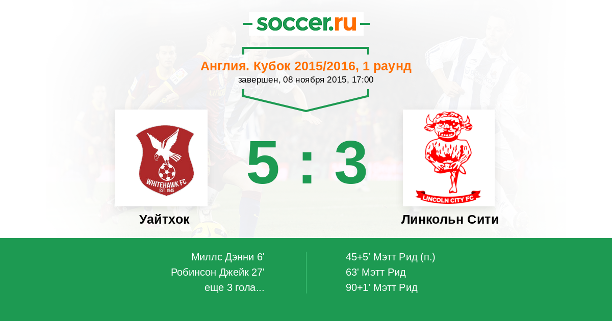 Протокол матча Уайтхок против Линкольн Сити