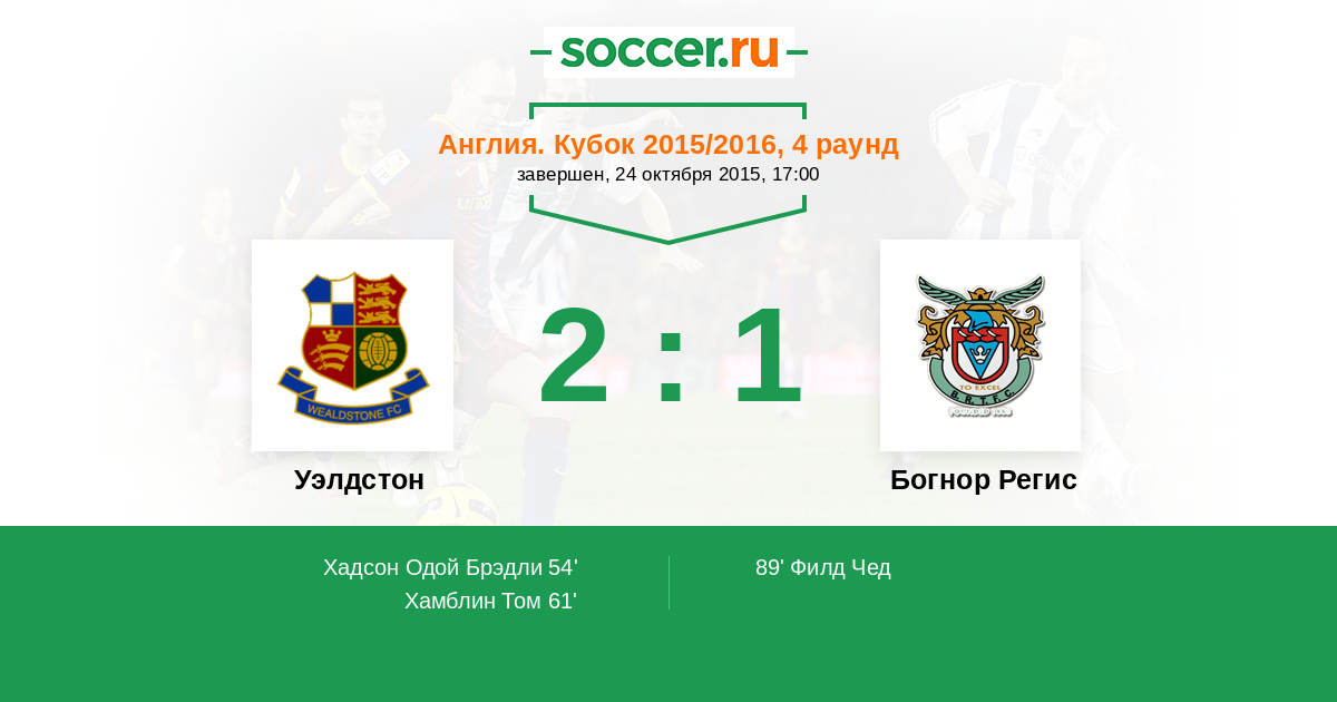 Протокол матча Уэлдстон против Богнор Регис