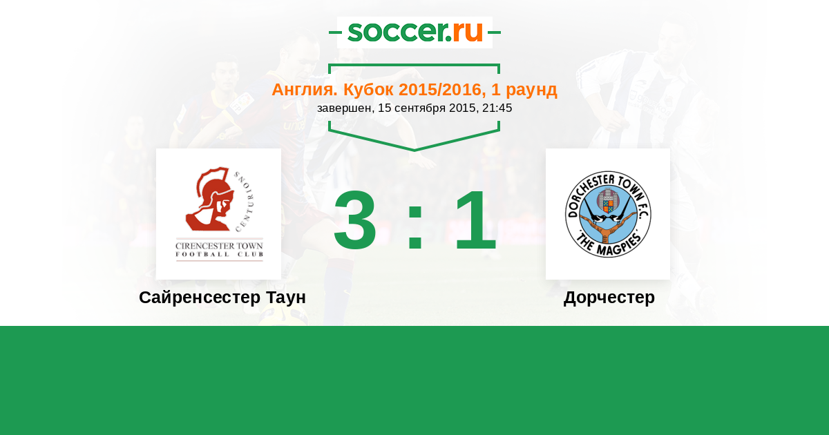 Англия. Кубок 11.09.2018 Дорчестер Логотип футбольный клуб Дорчестер 3:0 Логотип футбольный клуб Уимборн Таун (Уимборн Минстер) Уимборн Таун