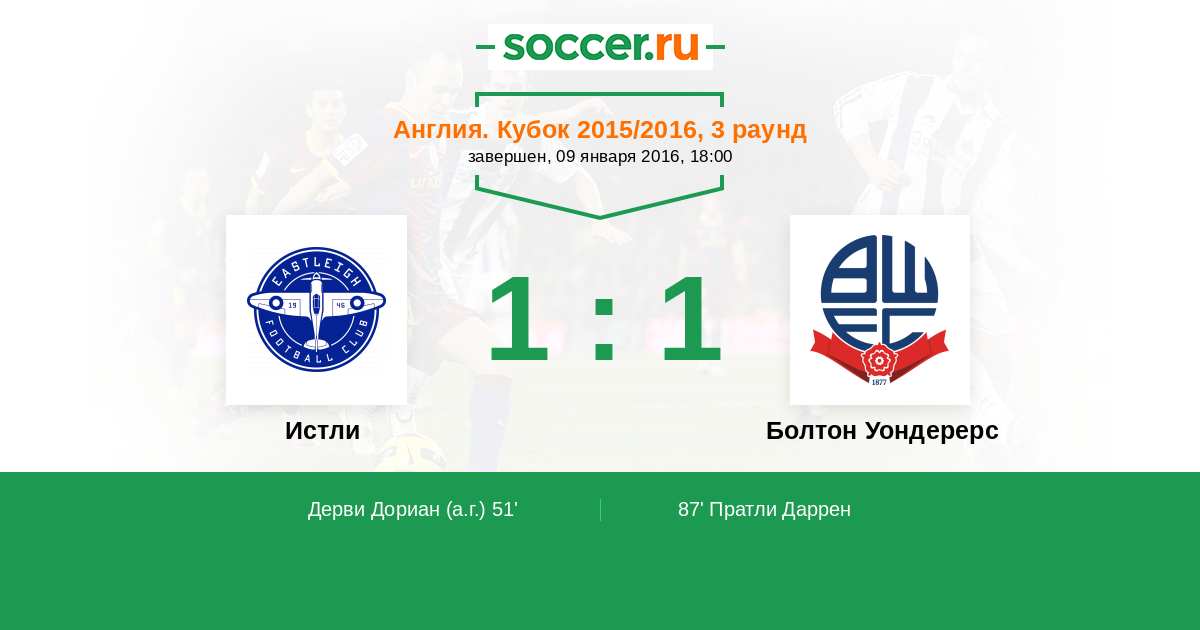 Протокол матча Истли против Болтон Уондерерс