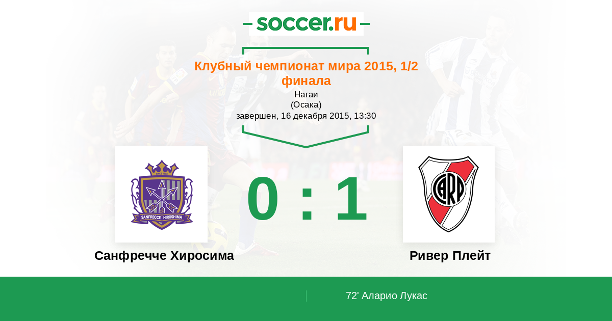 Протокол матча Санфречче Хиросима против Ривер Плейт