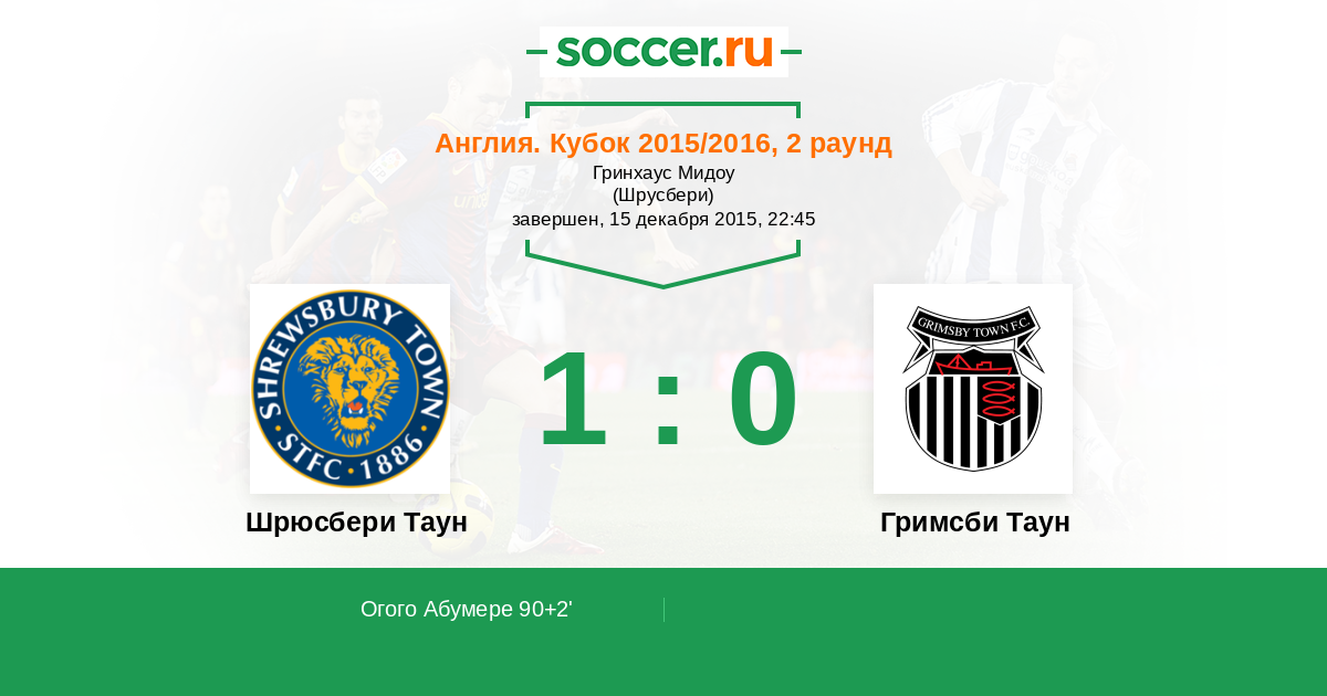 Протокол матча Шрюсбери Таун против Гримсби Таун