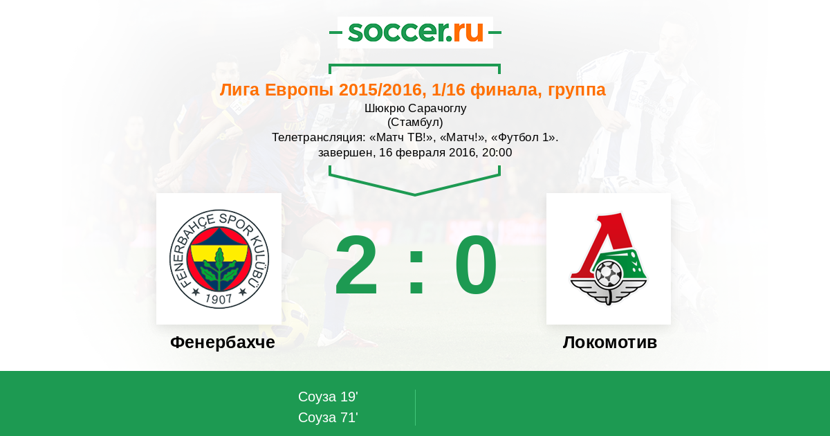 Протокол матча Фенербахче против Локомотив