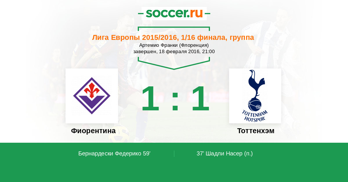 Протокол матча Фиорентина против Тоттенхэм