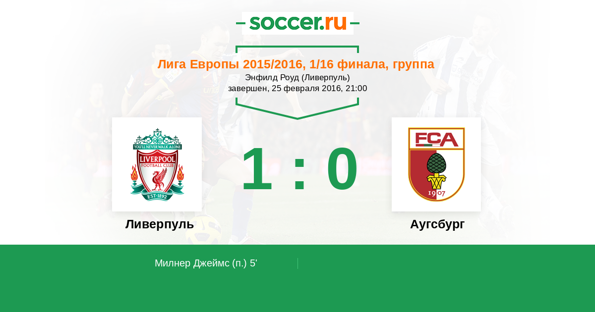 Протокол матча Ливерпуль против Аугсбург