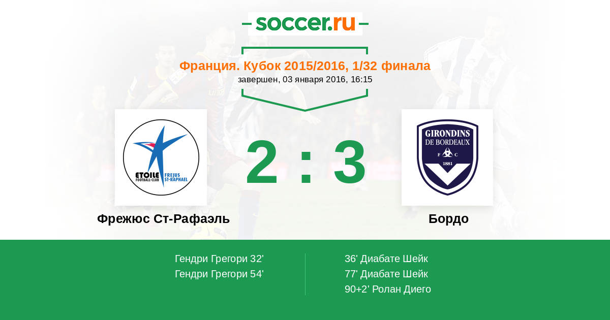 Протокол матча Фрежюс Ст-Рафаэль против Бордо