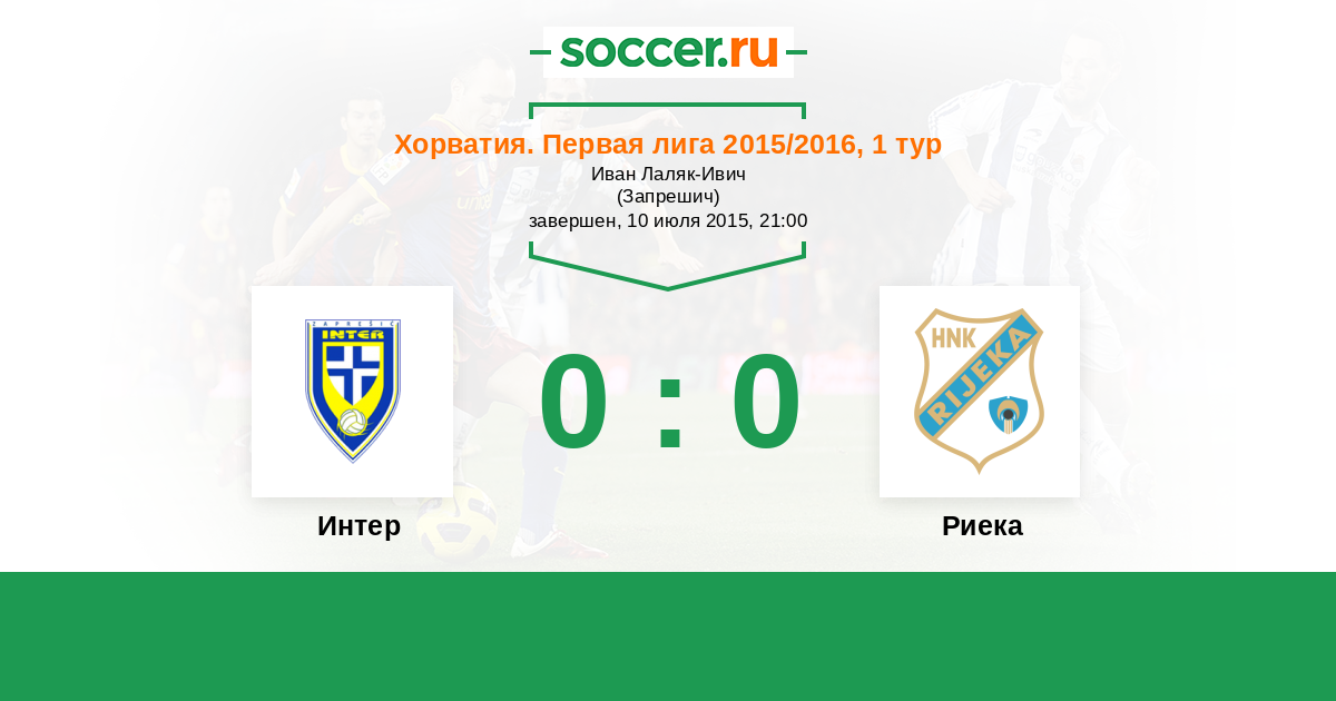 Хорватия. Первая лига 07.08.2016 Интер Логотип футбольный клуб Интер (Запрешич) 1:1 Логотип футбольный клуб Риека Риека