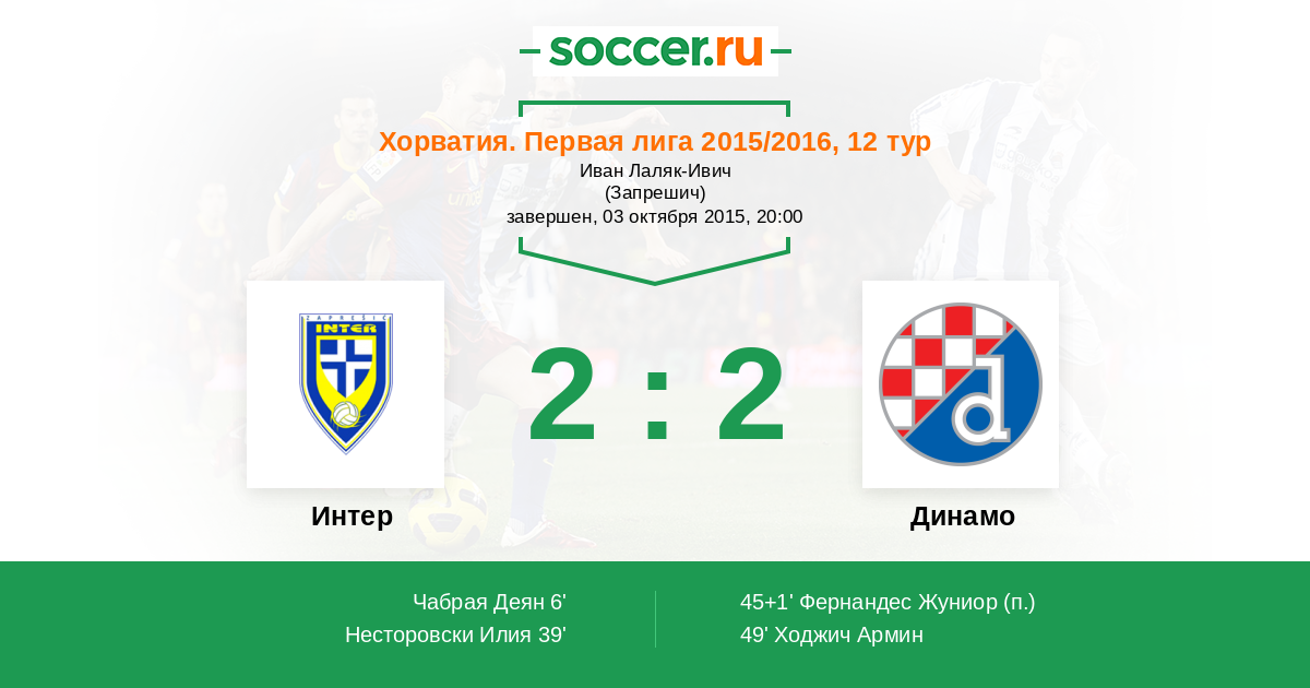 Протокол матча Интер против Динамо