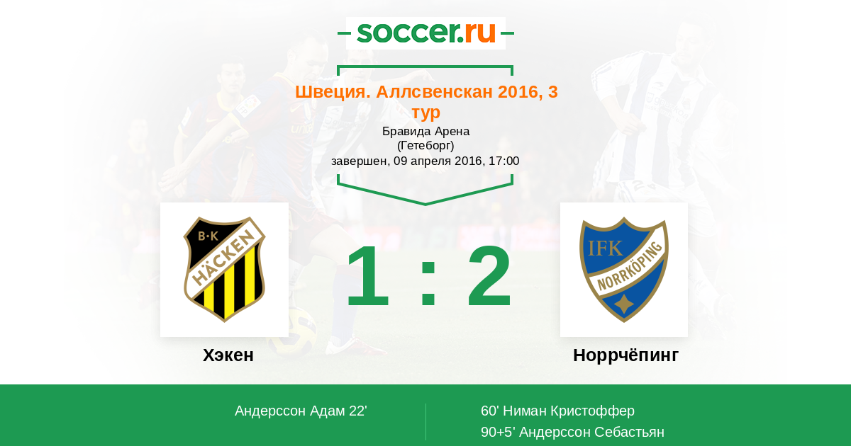 Протокол матча Хэкен против Норрчёпинг