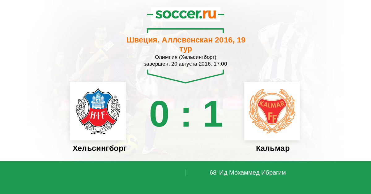 Протокол матча Хельсингборг против Кальмар