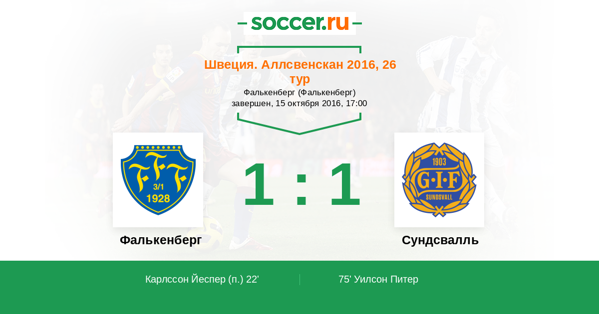 Протокол матча Фалькенберг против Сундсвалль