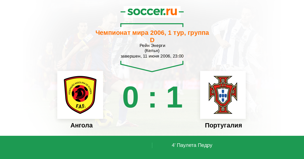Протокол матча Ангола против Португалия