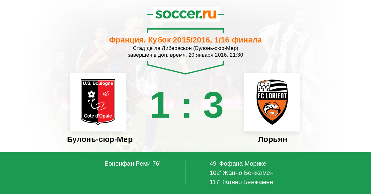 Протокол матча Булонь-сюр-Мер против Лорьян