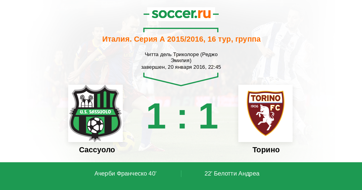 Протокол матча Сассуоло против Торино