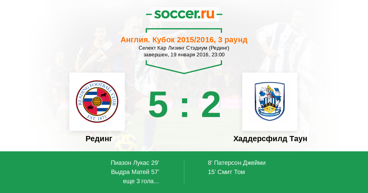 Протокол матча Рединг против Хаддерсфилд Таун