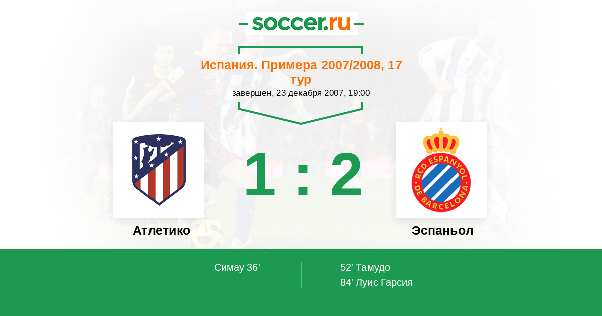 Протокол матча Атлетико против Эспаньол