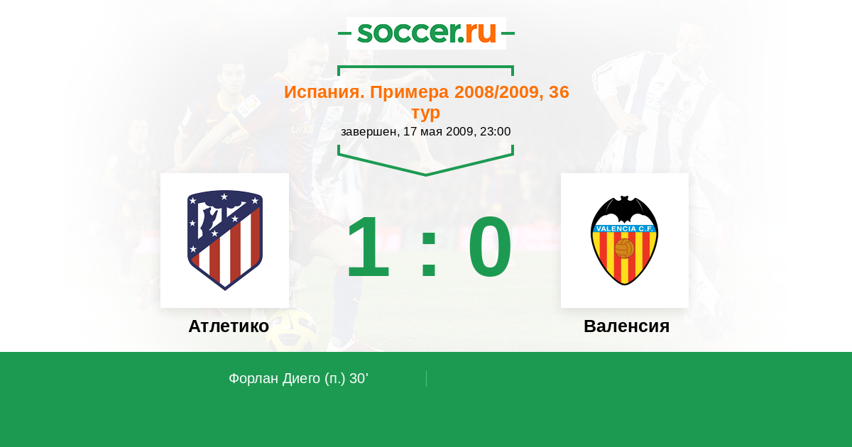 Протокол матча Атлетико против Валенсия
