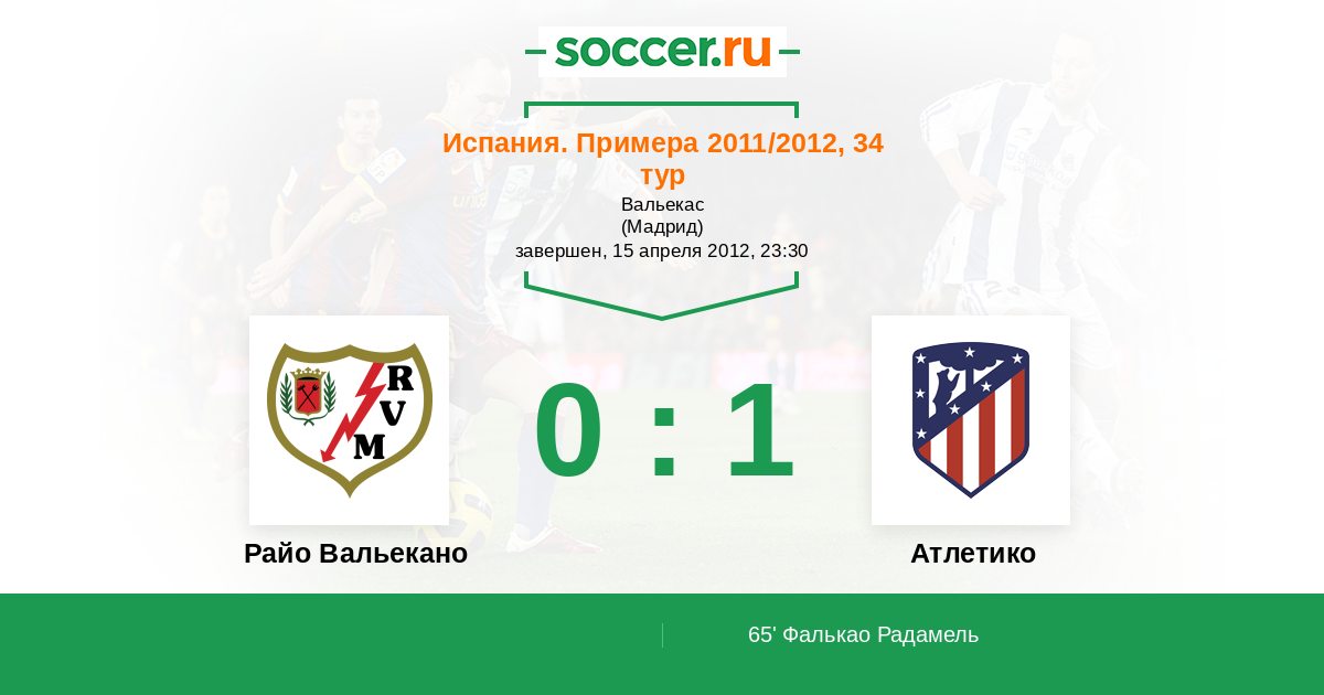 Протокол матча Райо Вальекано против Атлетико