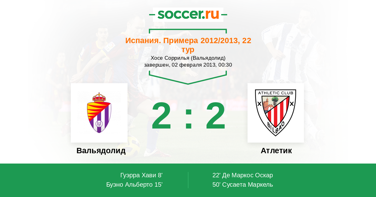Протокол матча Вальядолид против Атлетик