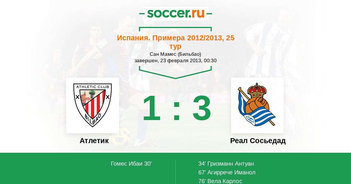 Протокол матча Атлетик против Реал Сосьедад