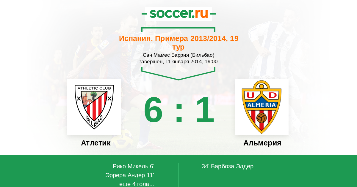 Протокол матча Атлетик против Альмерия