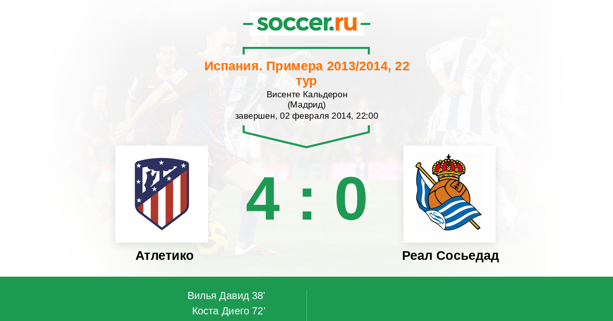 Протокол матча Атлетико против Реал Сосьедад