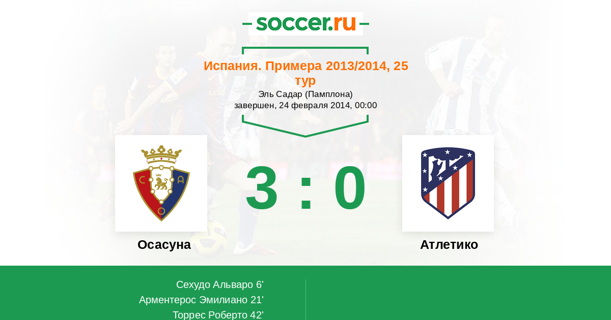 Протокол матча Осасуна против Атлетико
