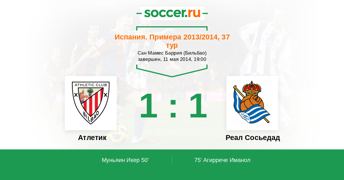 75' (1:1) Агиррече Иманол (9) (Вела Карлос (11))