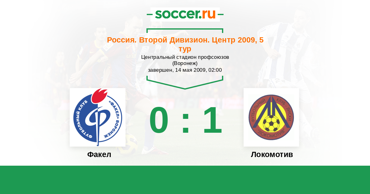 Россия. Вторая лига. Группа 3 13.08.2009 Локомотив Логотип футбольный клуб Локомотив (Лиски) 0:0 Логотип футбольный клуб Факел (Воронеж) Факел