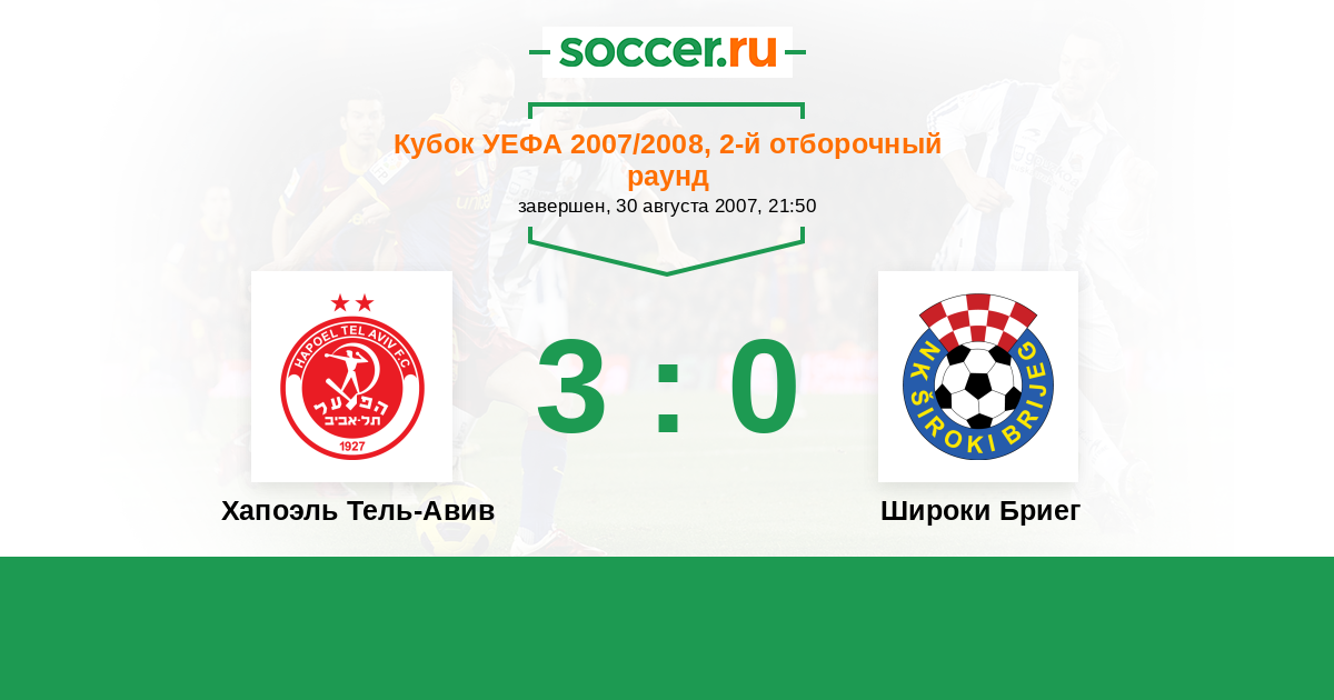 История матча Хапоэль Тель-Авив против Широки Бриег