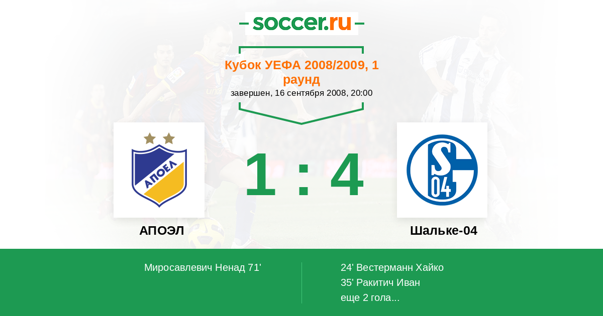 Протокол матча АПОЭЛ против Шальке-04