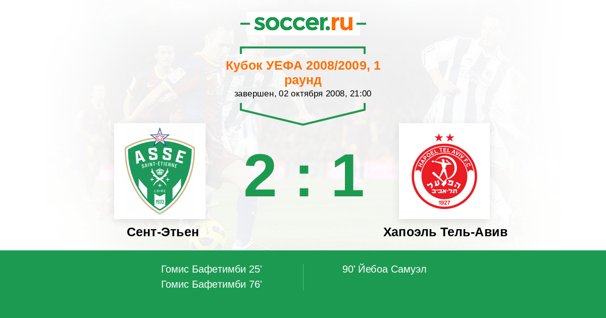 Протокол матча Сент-Этьен против Хапоэль Тель-Авив