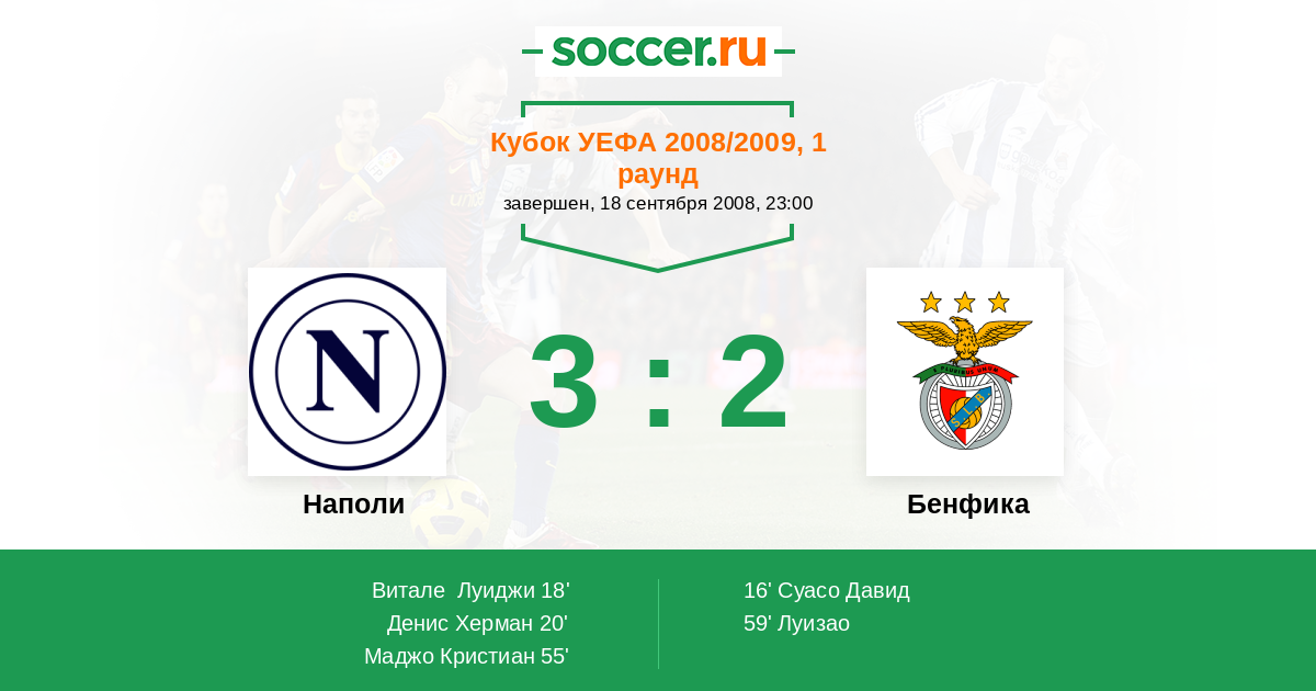 Протокол матча Наполи против Бенфика