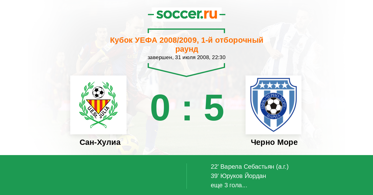 Протокол матча Сан-Хулиа против Черно Море