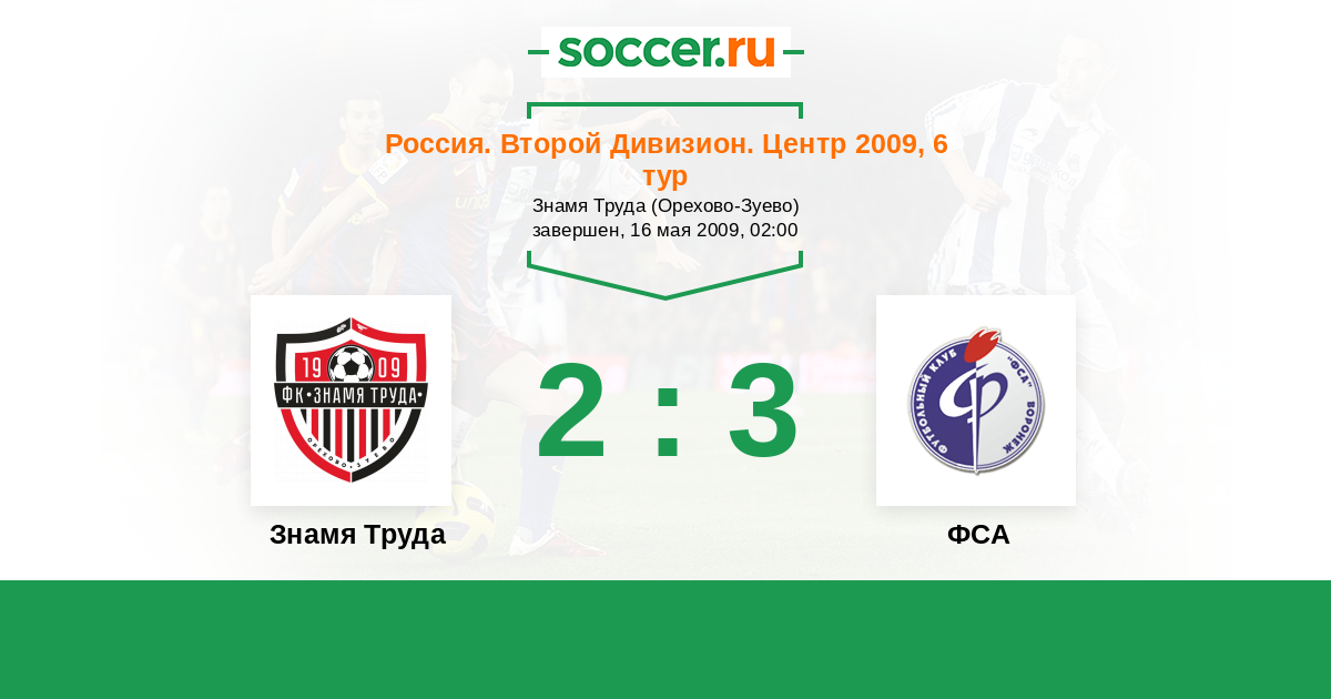 Россия. Вторая лига. Группа 3 16.08.2009 ФСА Логотип футбольный клуб ФСА (Воронеж) 0:2 Логотип футбольный клуб Знамя Труда (Орехово-Зуево) Знамя Труда