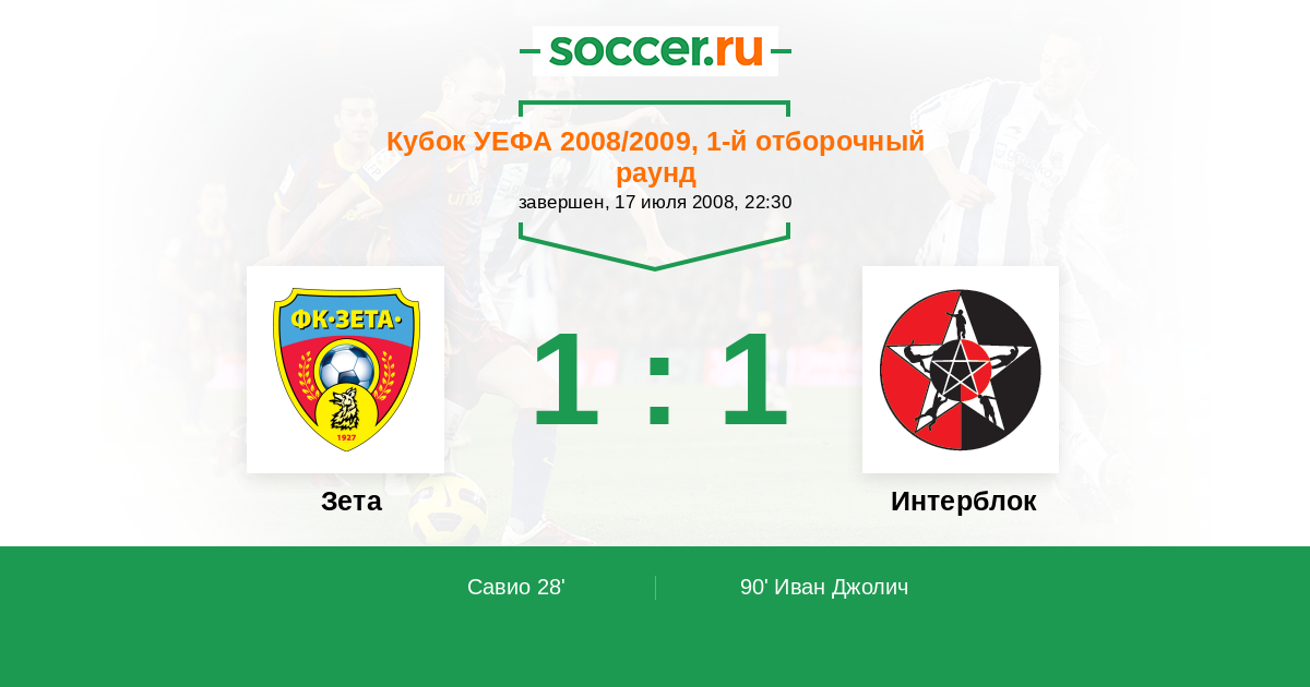 Протокол матча Зета против Интерблок