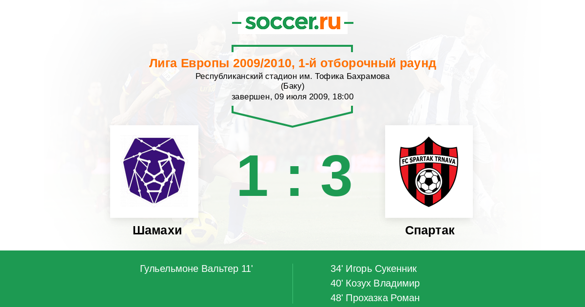 Протокол матча Интер против Спартак