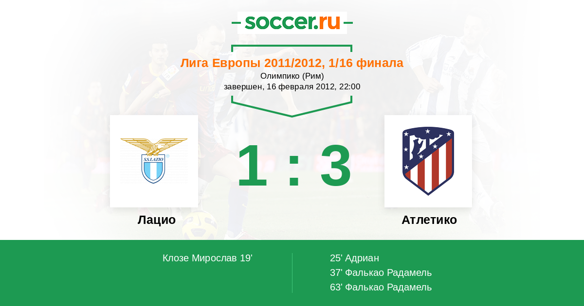 Протокол матча Лацио против Атлетико