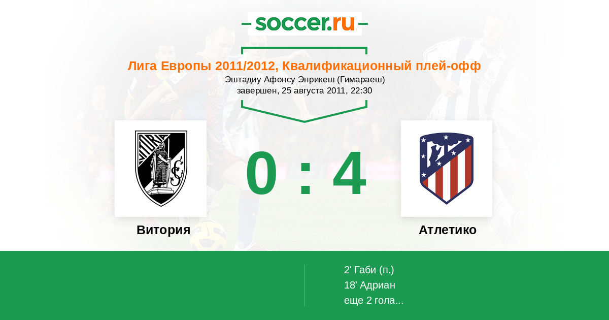 Протокол матча Витория против Атлетико