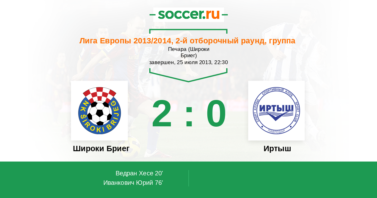 Протокол матча Широки Бриег против Иртыш