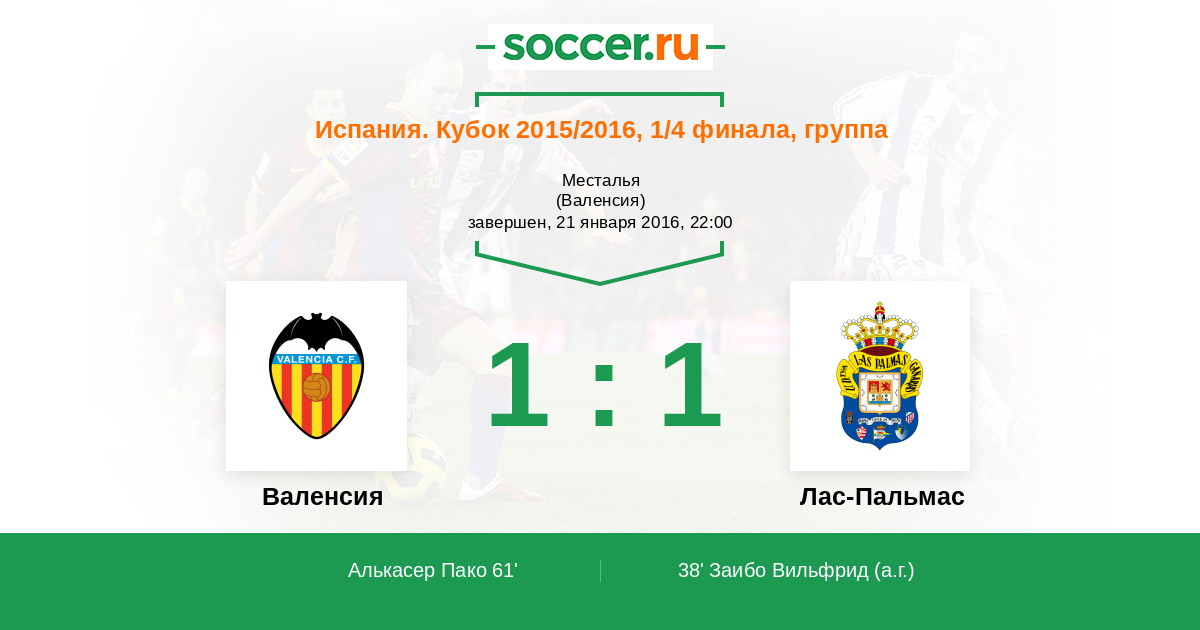 Протокол матча Валенсия против Лас-Пальмас