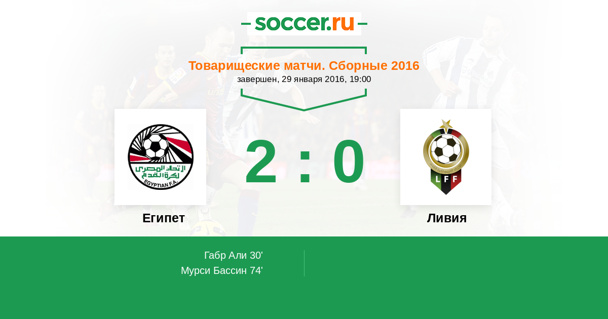 Протокол матча Египет против Ливия
