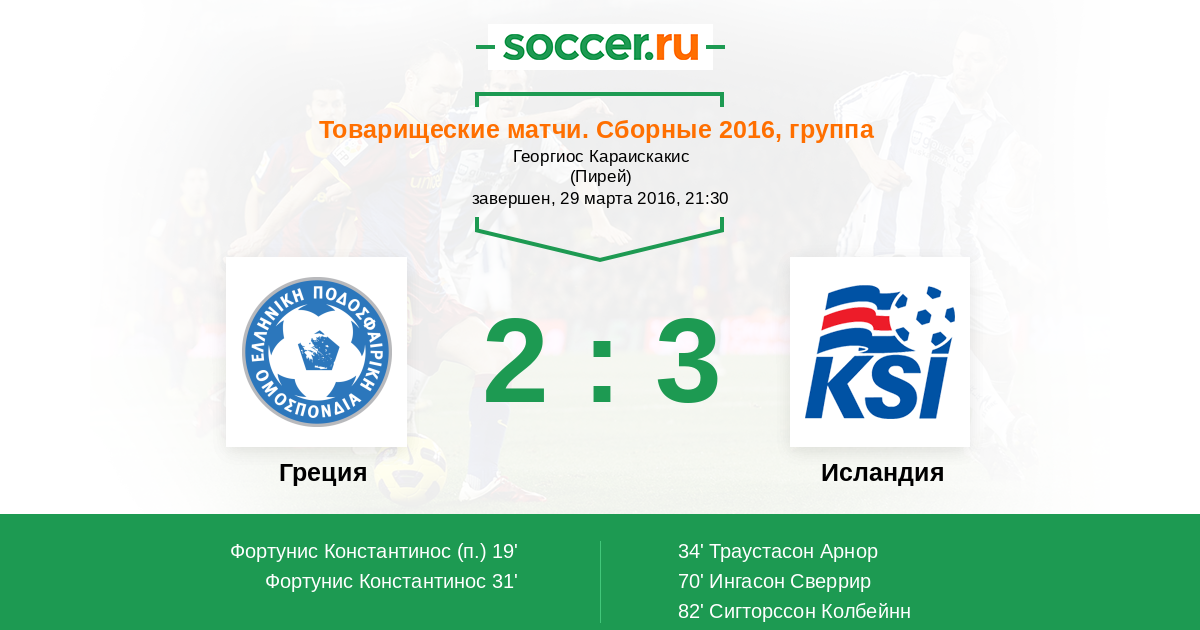Протокол матча Греция против Исландия